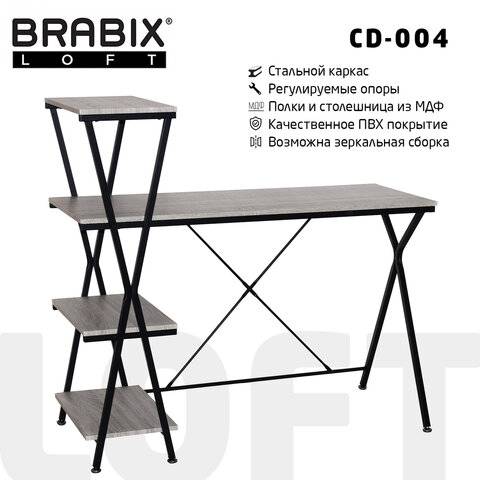 ПодробнееСтол на металлокаркасе BRABIX LOFT CD-003, 640х420х840 мм, цвет дуб антик, 641216