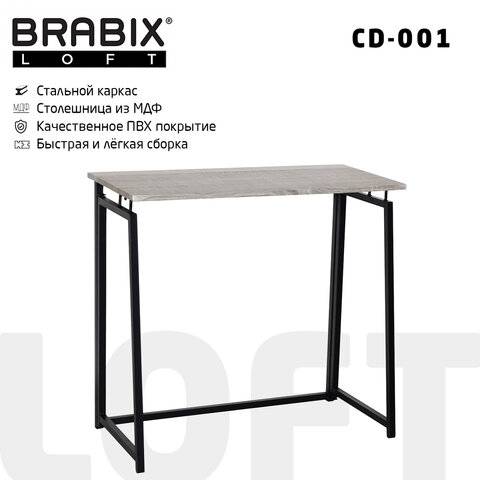 ПодробнееСтол на металлокаркасе BRABIX LOFT CD-002, 1000х500х750 мм, складной, цвет дуб антик, 641213